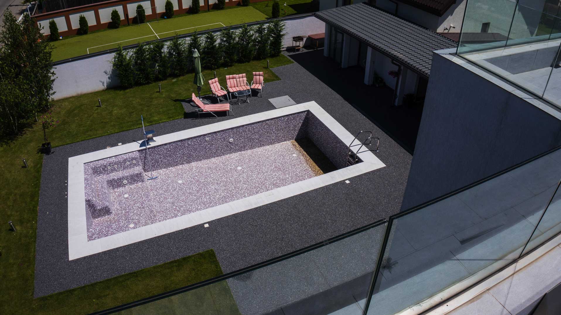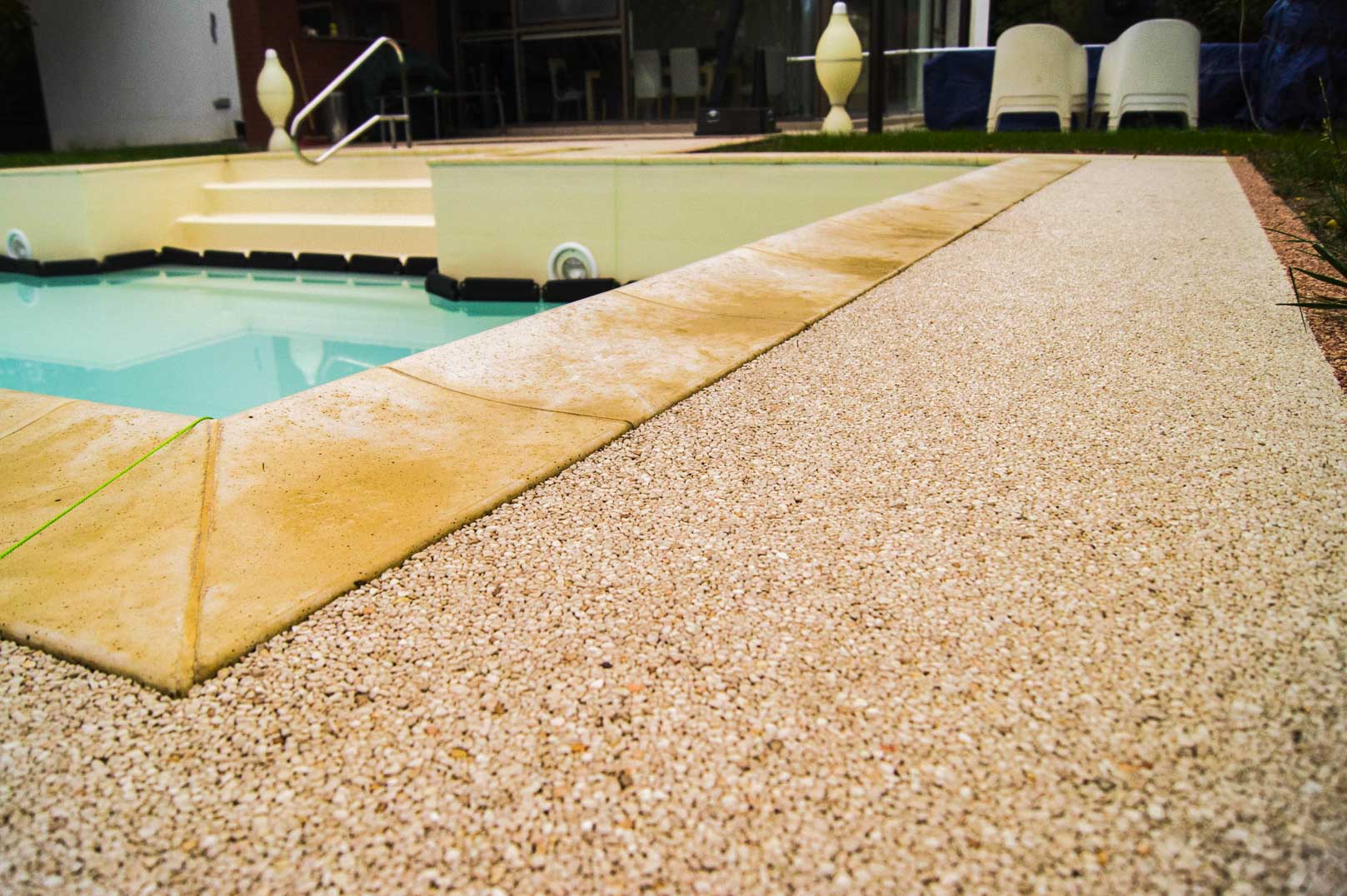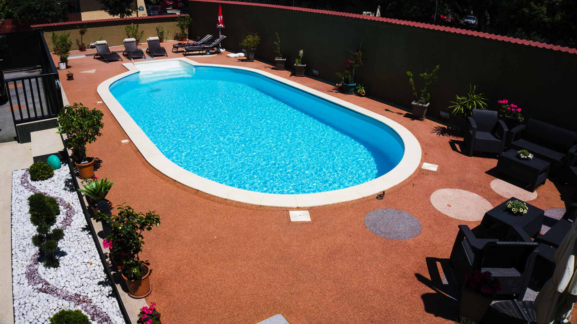 Upgrade your pool area with natural stone carpet for a sleek, luxurious look. The subtle variation in natural colors adds depth and character, reflecting the beauty of the outdoors. Comfortable under bare feet and resistant to heat, this surface is perfect for creating a stylish, safe, and inviting poolside experience.